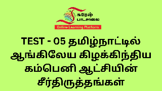 TEST - 05 தமிழ்நாட்டில் ஆங்கிலேய கிழக்கிந்திய கம்பெனி ஆட்சியின் சீர்திருத்தங்கள்