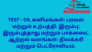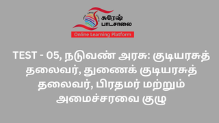 TEST - 06, மாநில அரசாங்கம்: முதலமைச்சர் மற்றும் அமைச்சரவைக் குழு -தமிழ்நாடு சட்ட மன்றம்: கட்டமைப்பு, அதிகாரங்கள் மற்றும் செயல்பாடுகள்