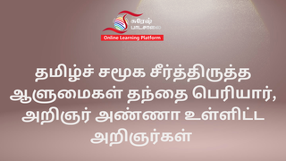 TEST - 10, தமிழ்ச் சமூக சீர்த்திருத்த ஆளுமைகள் தந்தை பெரியார், அறிஞர் அண்ணா உள்ளிட்ட அறிஞர்கள்