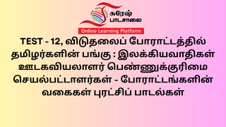 TEST - 09, விடுதலைப் போராட்டத்தில் தமிழர்களின் பங்கு : இலக்கியவாதிகள் ஊடகவியலாளர் பெண்ணுக்குரிமை செயல்பட்டாளர்கள் - போராட்டங்களின் வகைகள் புரட்சிப் பாடல்கள்