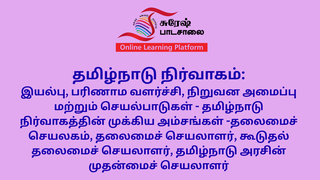 TEST - 08, தமிழ்நாடு நிர்வாகம்: இயல்பு, பரிணாம வளர்ச்சி, நிறுவன அமைப்பு மற்றும் செயல்பாடுகள் - தமிழ்நாடு நிர்வாகத்தின் முக்கிய அம்சங்கள் -தலைமைச் செயலகம், தலைமைச் செயலாளர், கூடுதல் தலைமைச் செயலாளர், தமிழ்நாடு அரசின் முதன்மைச் செயலாளர்