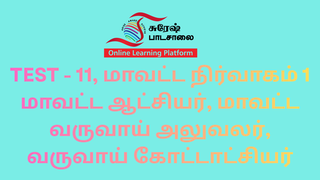 TEST- 09, மாவட்ட நிர்வாகம் 2: வட்டாட்சியர் ,வருவாய் ஆய்வாளர் ,வட்டார வளர்ச்சி அலுவலர் மற்றும் கிராம நிர்வாக அலுவலர் ஆகியோரின் பங்கு மற்றும் பணிகள்
