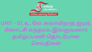 UNIT - 07, உ. வே .சுவாமிநாத ஐயர், மீனாட்சி சுந்தரம், இலகுவனார் தமிழ்ப்பணி தொடர்பான செய்திகள்
